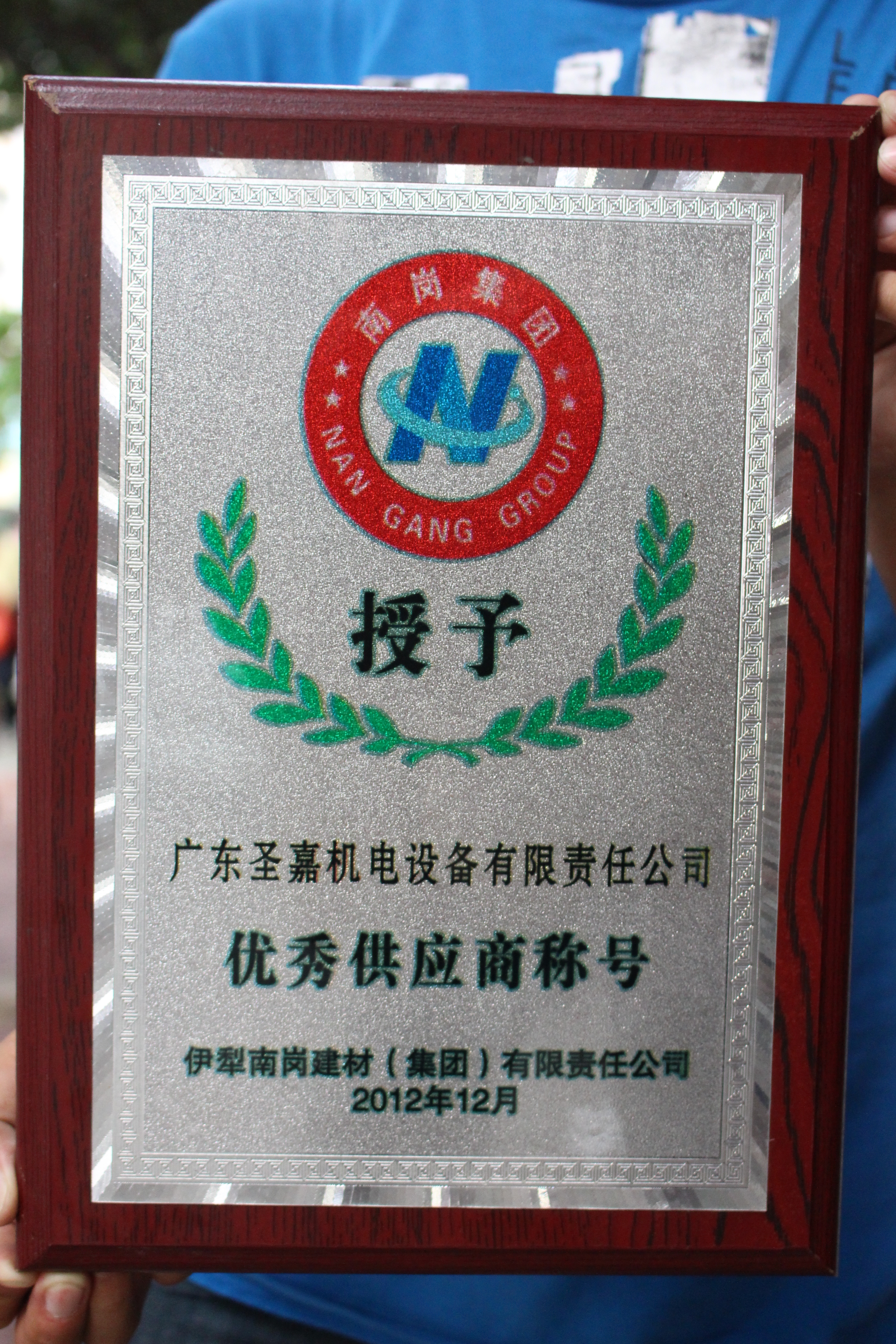 近日,從伊犁南崗建材集團傳來喜訊,在集團公司年終召開的合作單位答謝會上,特別給廣州圣嘉機電設(shè)備有限公司公司頒發(fā)了“優(yōu)秀供應(yīng)商”獎牌和獎金5000元。這是繼2011年廣州圣嘉第一次獲得伊犁南崗建材集團優(yōu)秀供應(yīng)商榮譽稱號后,今年再度獲得此項殊榮。